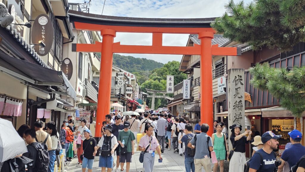 Nada más llegar, ya ves los primeros torii rojos, perfectamente alineados, creando ese túnel infinito que seguramente has visto mil veces en fotos. Pero lo que no te cuentan es que eso es solo el principio. Porque Fushimi Inari no se acaba en ese primer tramo lleno de gente. De hecho, lo bueno empieza cuando decides seguir subiendo.