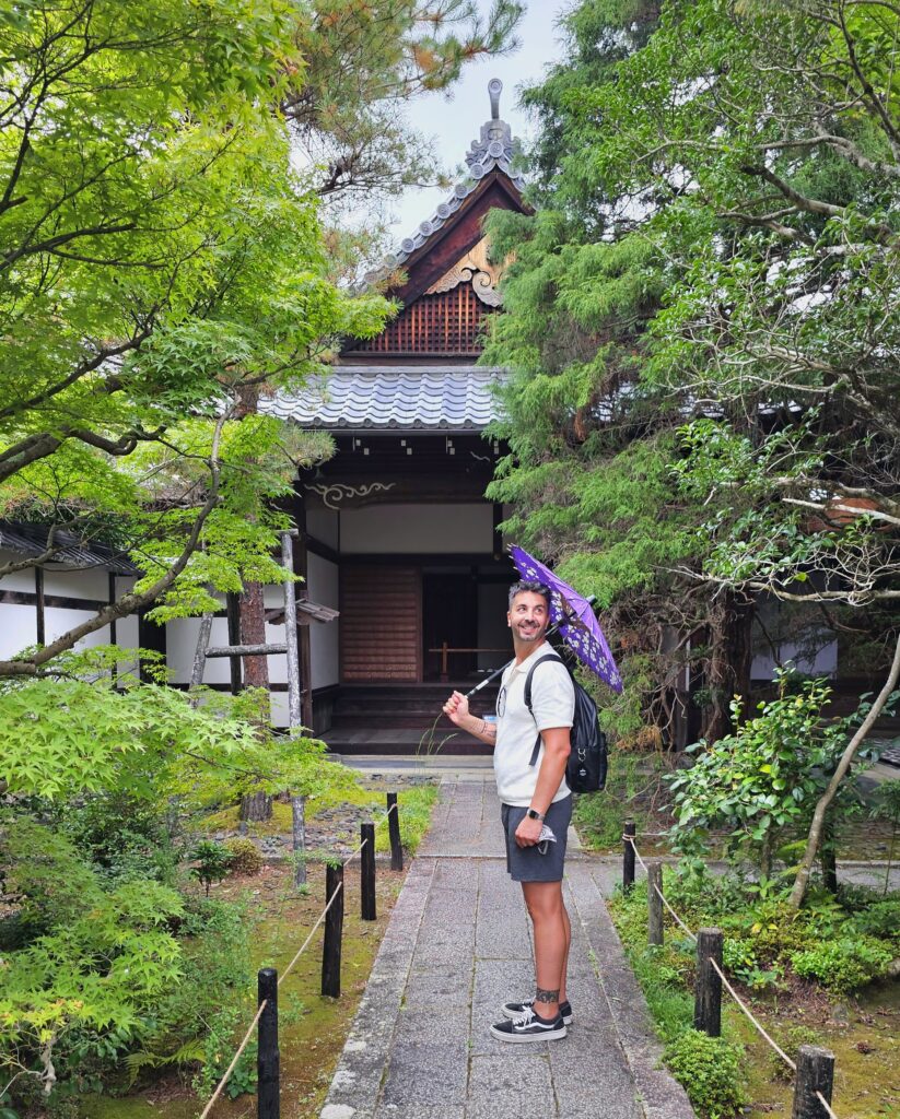Es un templo amplio, con arquitectura tradicional de madera, patios abiertos y ese silencio que no se encuentra fácilmente en Kioto.