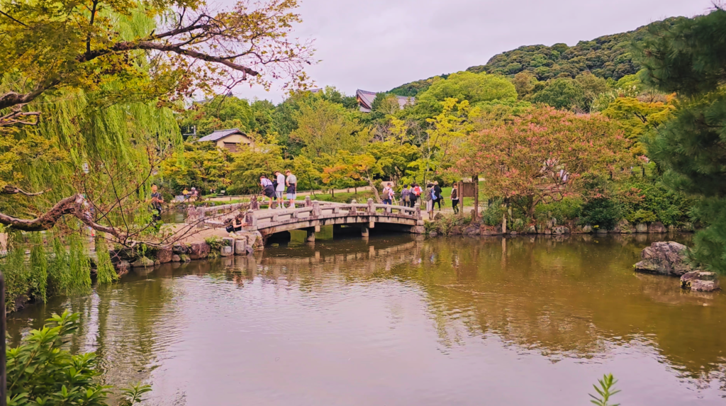 Pero incluso fuera de la temporada de sakura, sigue teniendo su encanto. Caminos rodeados de árboles, pequeños estanques, rincones tranquilos… es el sitio perfecto para bajar el ritmo y dejar que Kioto se asiente un poco dentro de ti.