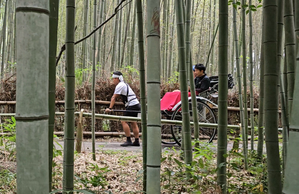 Hay una actividad un poco secreta hasta que llegas y es que puedes disfrutar de este imponente bosque de bambú desde un «Rickshaw» que es muy famoso en Japón es un un carro para dos personas con dos ruedas muy grandes que es tirado por hombre fuertes.