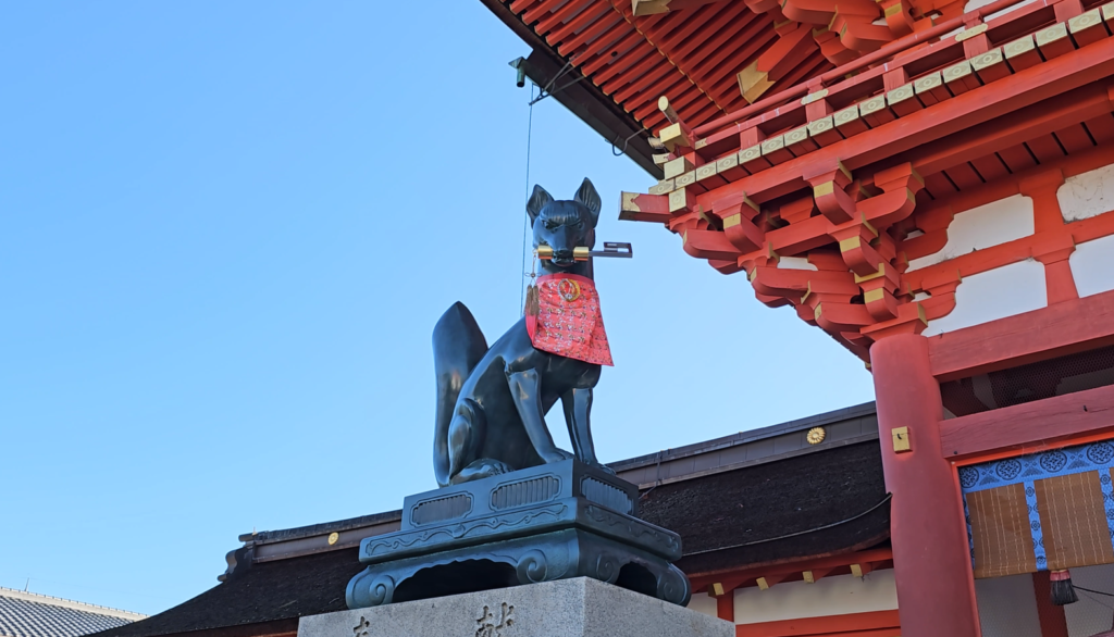 Además, el santuario está dedicado a Inari, el dios del arroz y la prosperidad, y por eso verás por todas partes estatuas de zorros, que son sus mensajeros. Es un detalle que le da aún más personalidad al lugar.