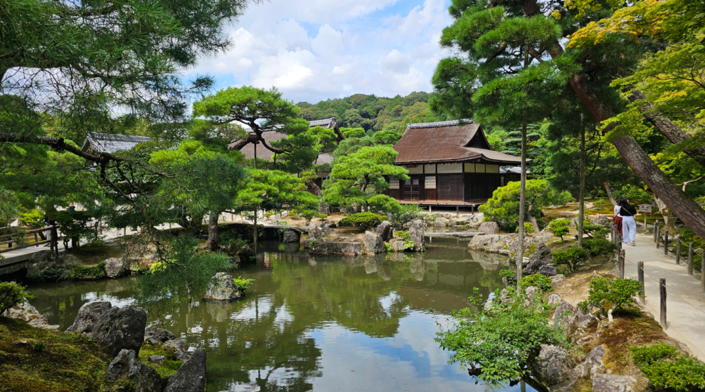 Después de ver el famoso templo dorado, muchos llegan aquí pensando que van a encontrar algo parecido en versión plateada. Spoiler: no. No hay plata. No hay brillo. No hay espectáculo fácil. Y sin embargo… es uno de los sitios más elegantes y especiales de todo Kioto.